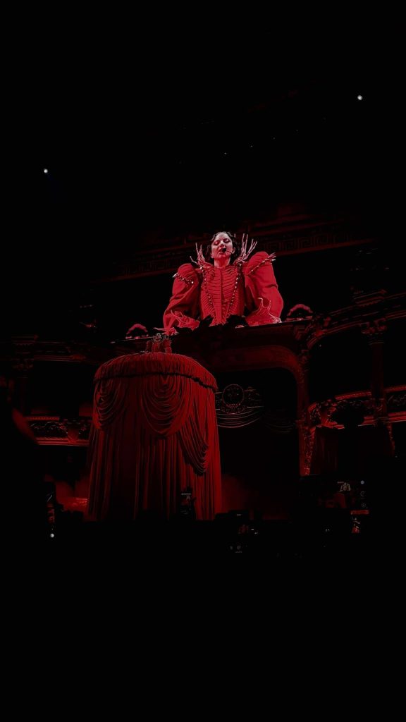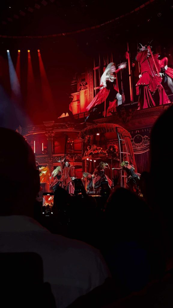 For the first show, I went solo by train and had a VIP ticket with an incredible view, really close to the stage. After a dramatic video interlude, Gaga appeared in a massive (and I mean massive) red dress.