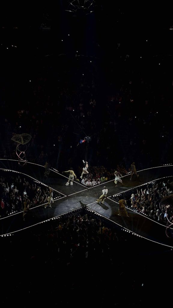 he performed for almost two and a half hours, covering all the big hits and plenty of newer songs too. She even did aerial stunts and closed the show flying across the arena on a giant butterfly — an absolute icon.